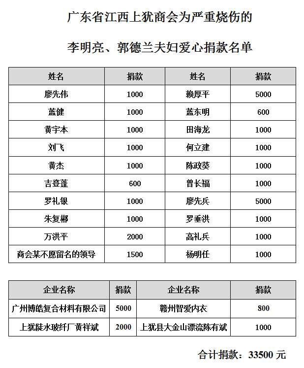 廣東博皓復(fù)合材料有限公司得知消息后,特批從公司愛心基金里捐出5000元,董事長(zhǎng)賴厚平個(gè)人捐出5000元。