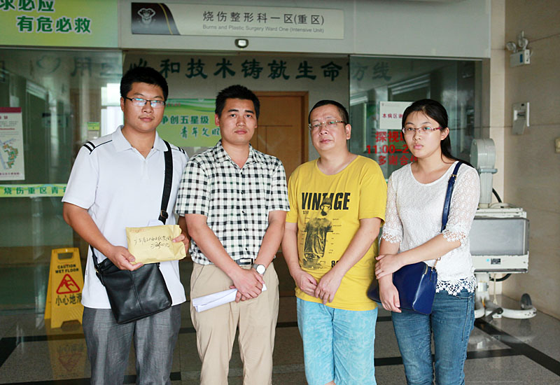 同時(shí),廣東省江西上猶商會(huì)在得知此事后,會(huì)長(zhǎng)劉易文指示秘書處組織、發(fā)起愛心捐款活動(dòng)。上猶商會(huì)各理事會(huì)員積極響應(yīng)捐款,短短幾天時(shí)間已籌集善款三萬(wàn)多元。2014年6月10日下午,商會(huì)常務(wù)副會(huì)長(zhǎng)賴厚平及商會(huì)秘書處組織副會(huì)長(zhǎng)朱復(fù)郴、秘書孔凡順及博皓公司代表組成3人探訪團(tuán),親到廣州紅十字會(huì)醫(yī)院探望李明亮夫婦,并送上了這筆愛心捐款。副會(huì)長(zhǎng)朱復(fù)郴慰問了患者并詳細(xì)詢問了其家屬情況,對(duì)其籌款近況提出了相應(yīng)的建議,同時(shí)鼓勵(lì)李劍、李婷面對(duì)困難要堅(jiān)強(qiáng)。李劍,李婷及其家屬對(duì)商會(huì)代表的到訪和愛心捐助表示衷心感謝!